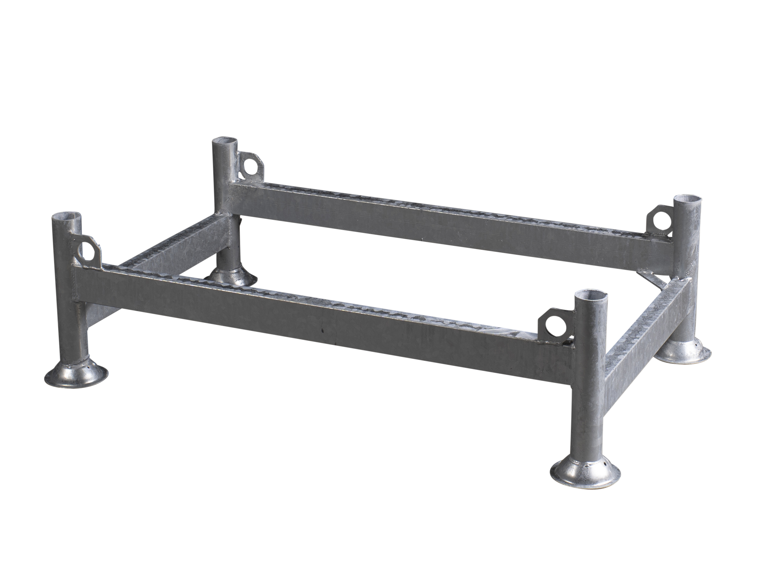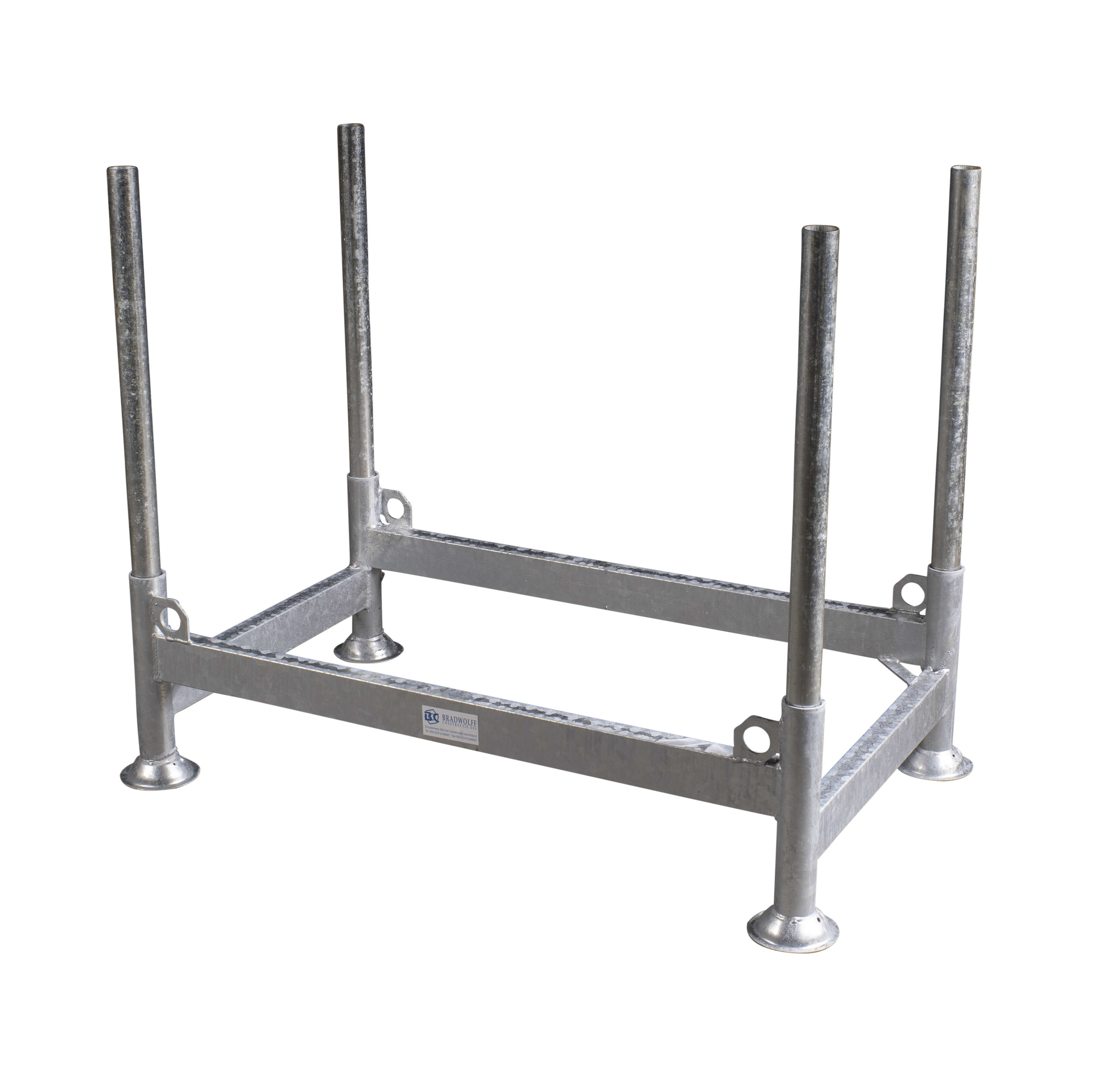 Deze pallet heeft een zware stalen uitvoering, stapelbaar als stelling. De pallets worden standaard inclusief 4 losse (thermisch verzinkt) staanders van 1 m geleverd. In diverse maten verkrijgbaar. Ook eigen ontwerp pallets zijn mogelijk.